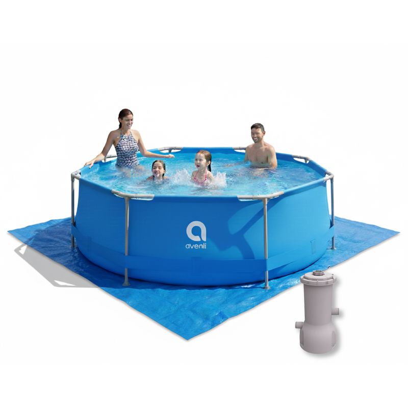 Combo Pileta Avenli 300x76 cm (4383 L) + Bomba Filtrante + Protector, el kit completo para mantener tu agua siempre limpia y tu pileta protegida. Su tamaño es ideal para espacios medianos y ofrece una estructura resistente, fácil de armar y lista para horas de diversión en familia.