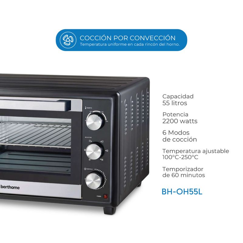 🔍 ¿Por qué Elegir el Horno Eléctrico Berthome 55L?